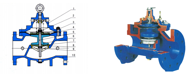 ![]() 閥蓋與閥體上的內(nèi)凹槽通過活塞缸的外圓定位,確保 閥盤、活塞、指示桿同心,使閥盤運動自動,從而提 高主閥的靈敏度,即使在流量或壓力波動不大的情況 下,活塞式水力控制閥亦能可靠地工作。 |